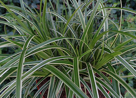 • Lapija: siauri, blizgūs, tamsiai žali lapai su ryškia balta juosta per vidurį